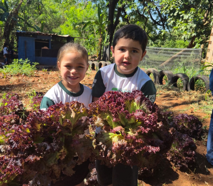 A horta envolve cerca de 140 crianças do Ensino Infantil e Fundamental I, com idades entre 4 e 10 anos, que participam de todas as etapas do cultivo. Além dos tomates e alfaces, já foram plantadas rúcula, cebolinha, milho, mandioca, cenoura, cheiro-verde e beterraba. Os alimentos colhidos são utilizados diretamente na merenda escolar, garantindo refeições mais frescas e nutritivas.