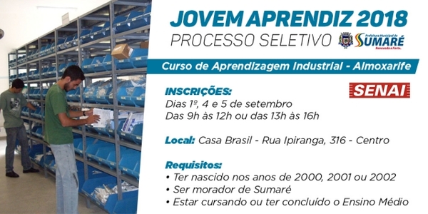 Sumaré, 29 de agosto de 2017 A Secretaria Municipal de Educação de Sumaré, em parceria com o Senai, realiza neste mês de setembro processo …