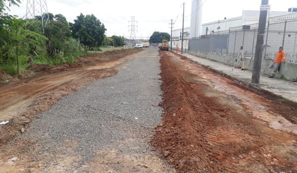 Segue a pavimentação de um trecho de 750 m² de extensão da Rua Bruno Penteado Ferraz de Campos – que margeia a 3M do Brasil, …